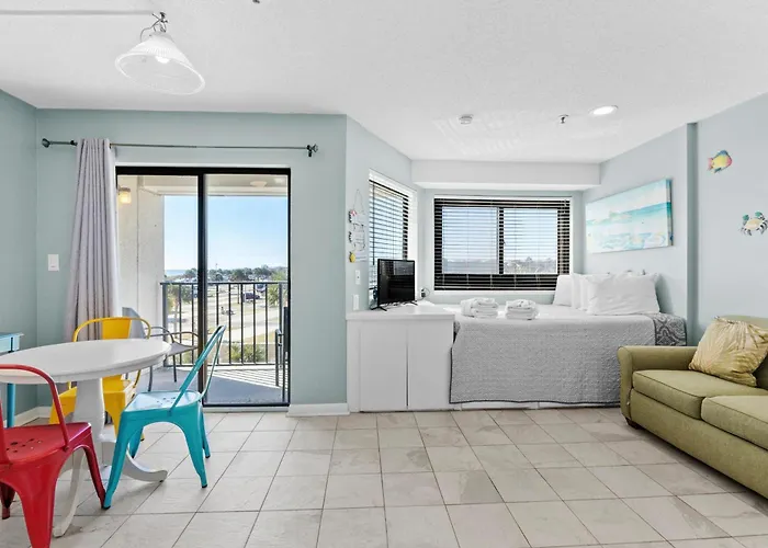 The 1-room Myrtle Beach Resort T208 is located 10 minutes by car from the Surfside Beach Pier and 2.5 km from Hudson's Surfside Flea market. An indoor pool are available at this apartment, providing guests with a more serene stay.